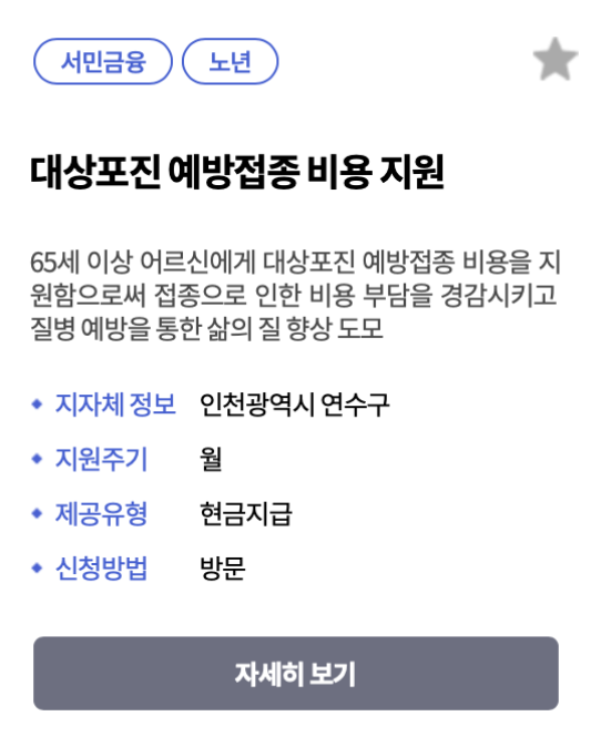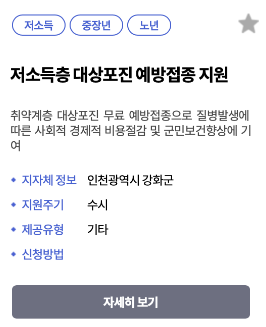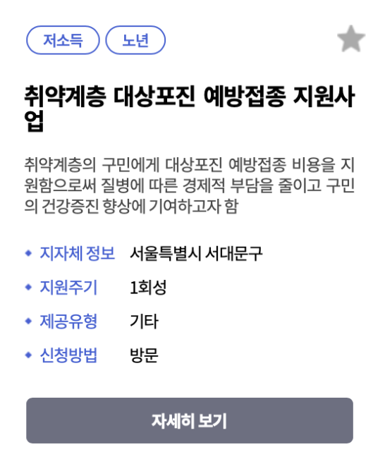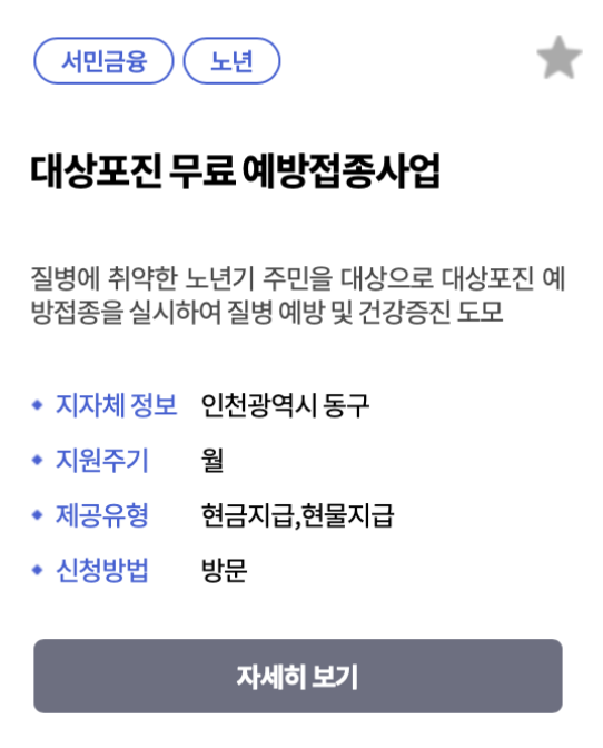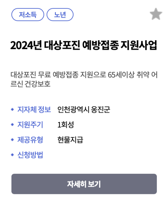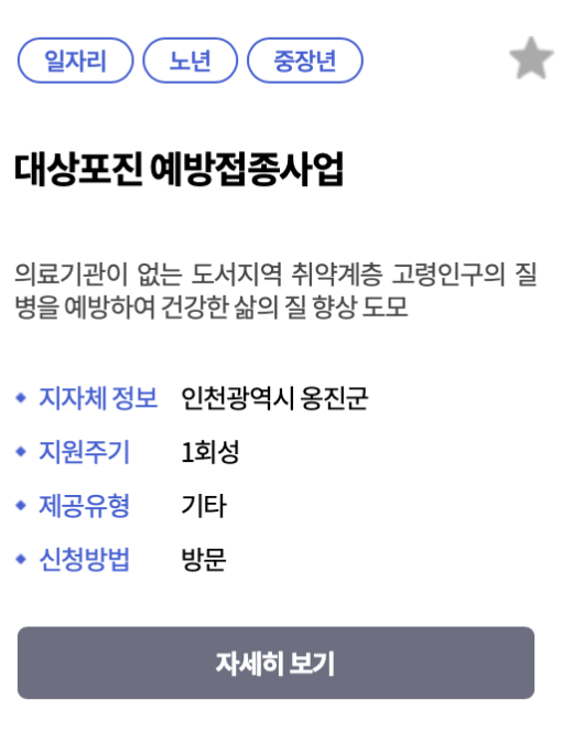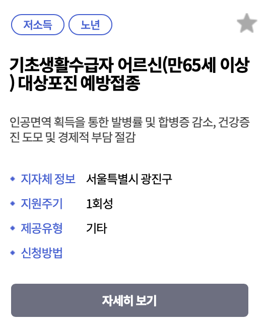 - 복지로 홈페이지에서 본인의 거주 지역에서 제공하는 무료 예방접종 서비스가 있는지 확인합니다.