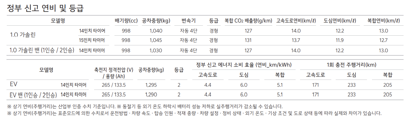 기아 레이 EV 제원