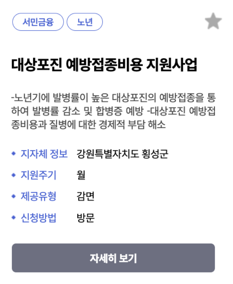 대상포진 예방접종 지원 프로그램에 대해 더 자세한 정보를 원하시면 복지로 웹사이트를 통해 확인할 수 있습니다. 복지로 웹사이트에서 지역별로 제공되는 예방접종 프로그램과 지원 내용을 확인할 수 있습니다.